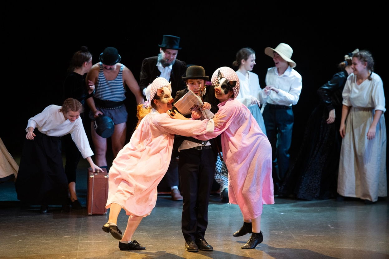 Каждому из актеров достаются разные персонажи, и даже трудно поверить, что всю эту кутерьму перевоплощений создают московские школьники.