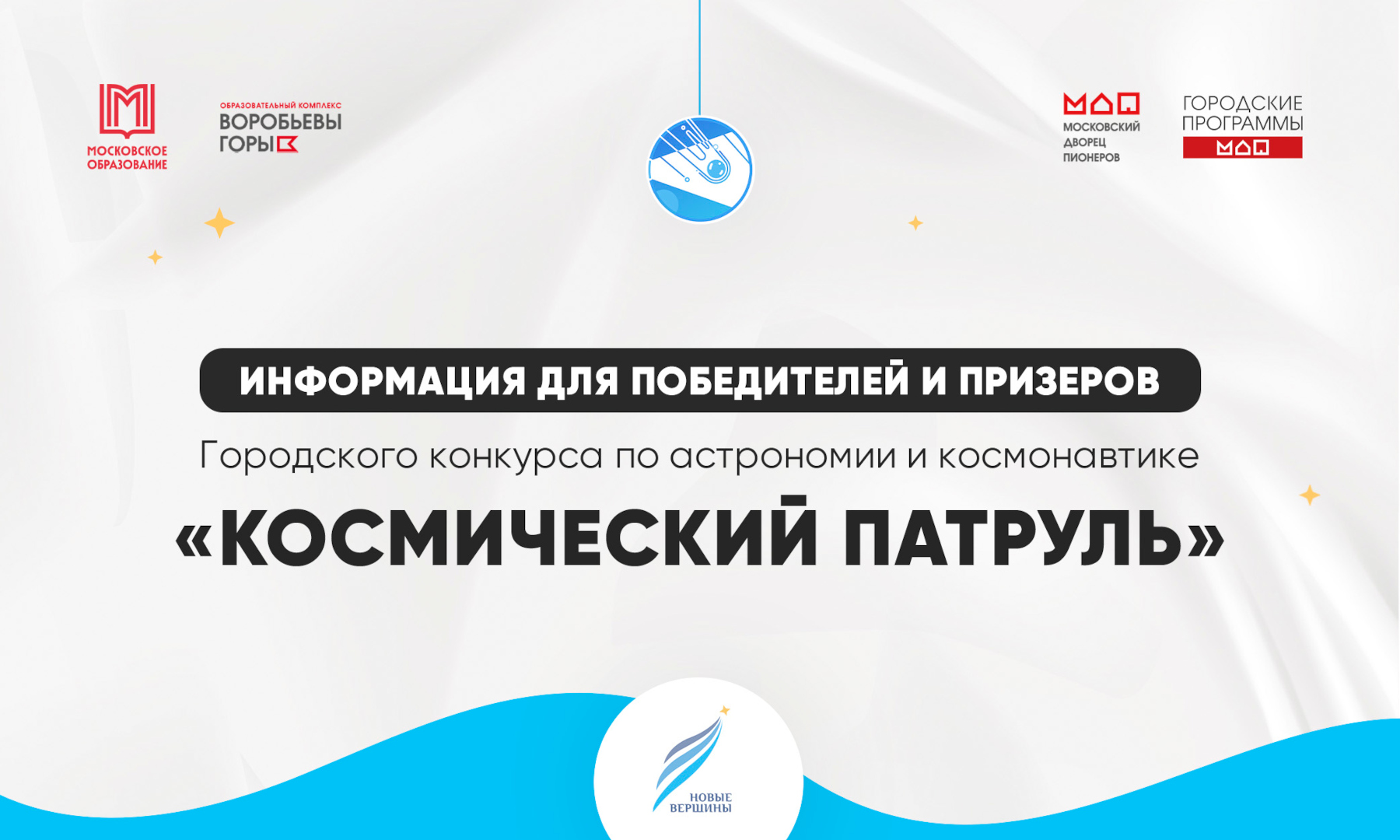 Результаты городского конкурса по астрономии и космонавтике «Космический патруль» опубликованы на сайте городской конкурсной программы «Новые вершины».