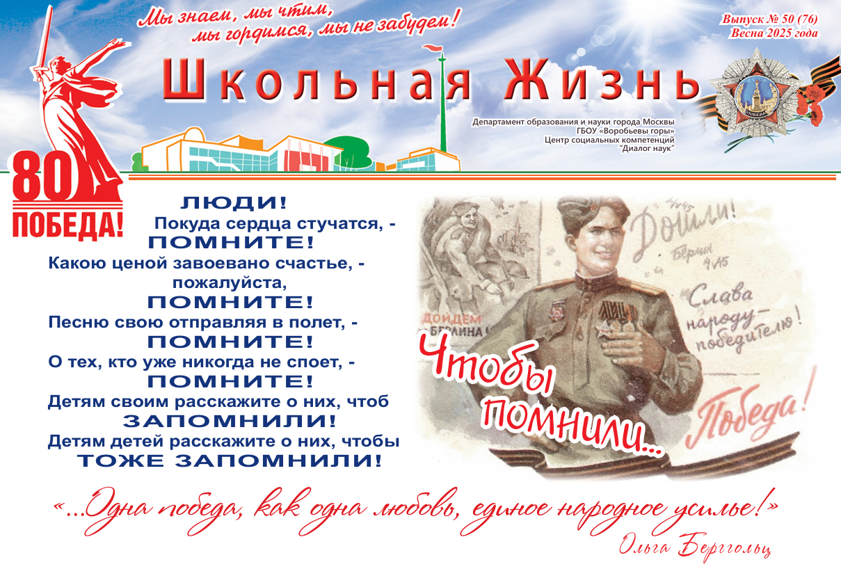 Выпуск посвящён 80-летию Победы советского народа над немецко-фашистскими захватчиками в Великой Отечественной войне 1941-1945 годов. В судьбе каждой семьи война оставила свой след. Наша задача — сохранить память о подвиге народа, знать и помнить её историю, гордиться ею и гордость эту передавать из поколения в поколение.