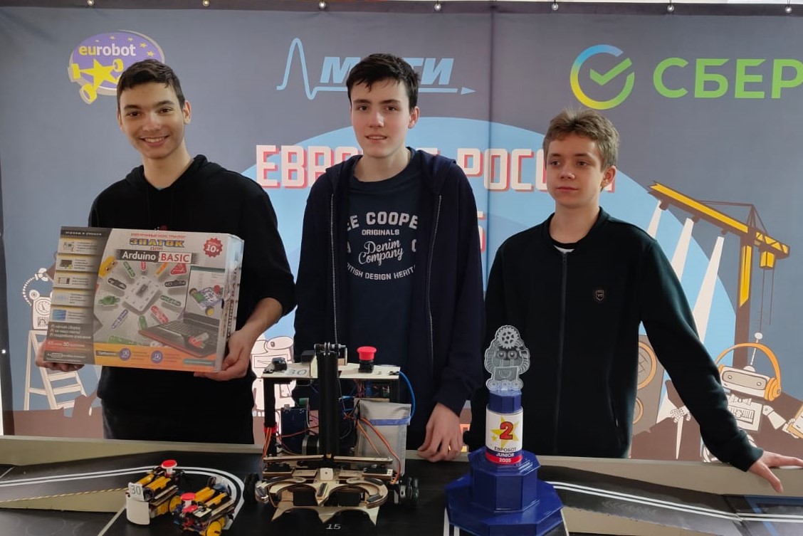 По результатам упорной борьбы в командных соревнованиях по регламенту ЕВРОБОТ в категории «Джуниор» (управляемые роботы) призерами стали две команды.