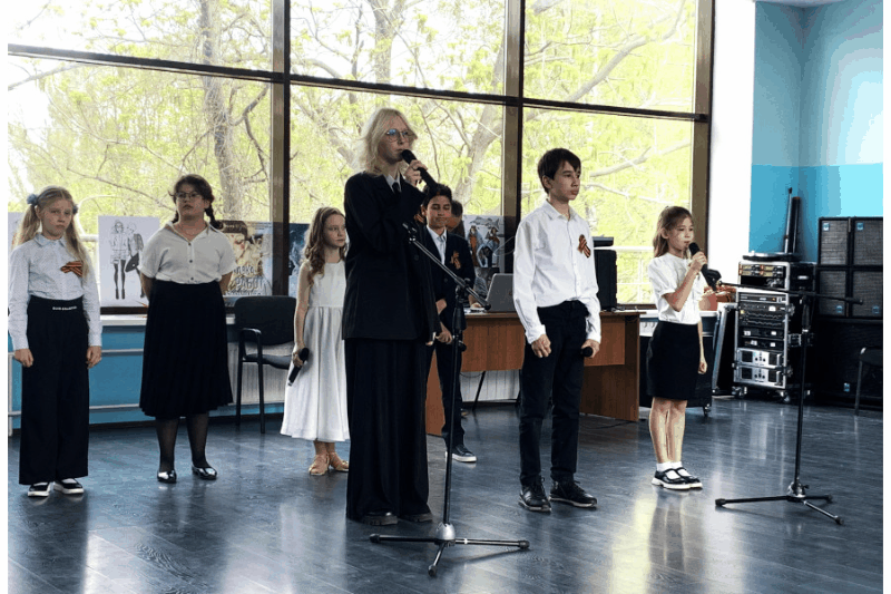 С импровизированной сцены прозвучали стихи и песни, посвящённые Победе советского народа в Великой Отечественной войне в исполнении артистов театральной студии «Паровоз» (руководитель Александр Геннадьевич Алексеев), вокального ансамбля «Консонанс» (руководитель Ольга Николаевна Федоровская). Завершилась композиция танцевальным номером «Я шагаю по Москве» ансамбля современного танца «Спектр» (руководители Людмила Ивановна Деева и Наталья Владиславовна Миротворская).