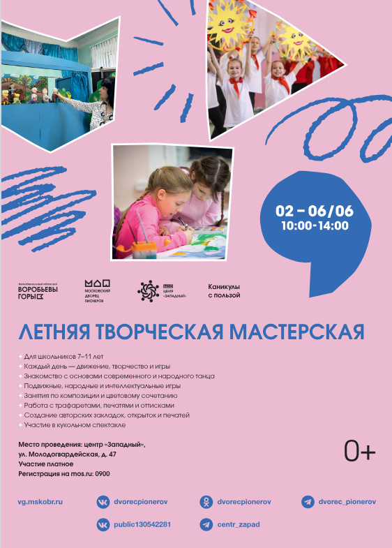 Место проведения: г Москва, ул. Молодогвардейская, д. 47. Центр «Западный» ГБОУ «Воробьевы горы».