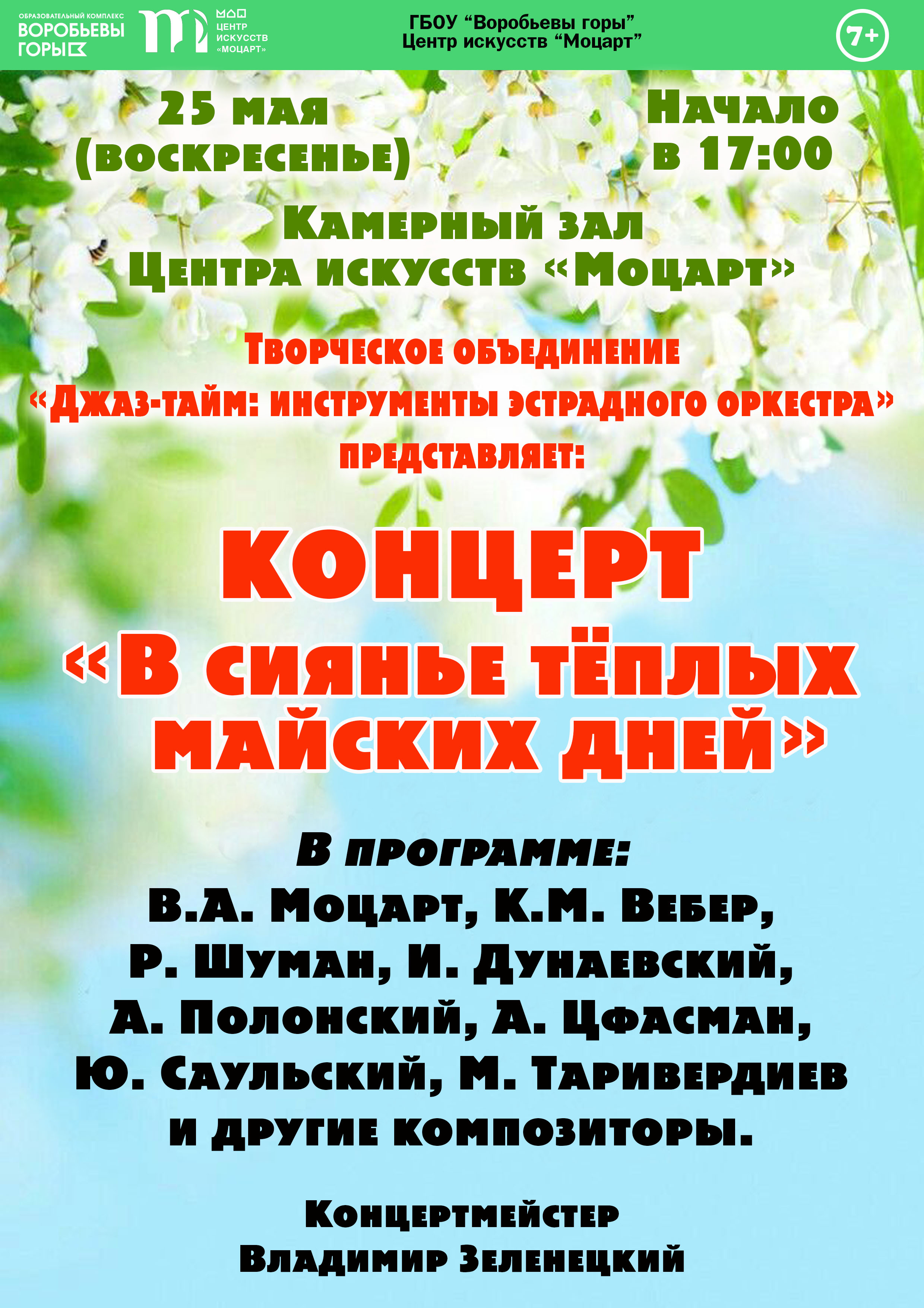 Начало концерта в 17:00, вход по предварительной регистрации у куратора объединения.