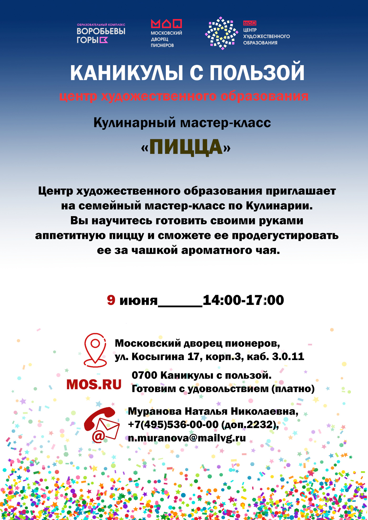 9 июня, 14:00-17:00. Кулинарный мастер-класс «Пицца».
