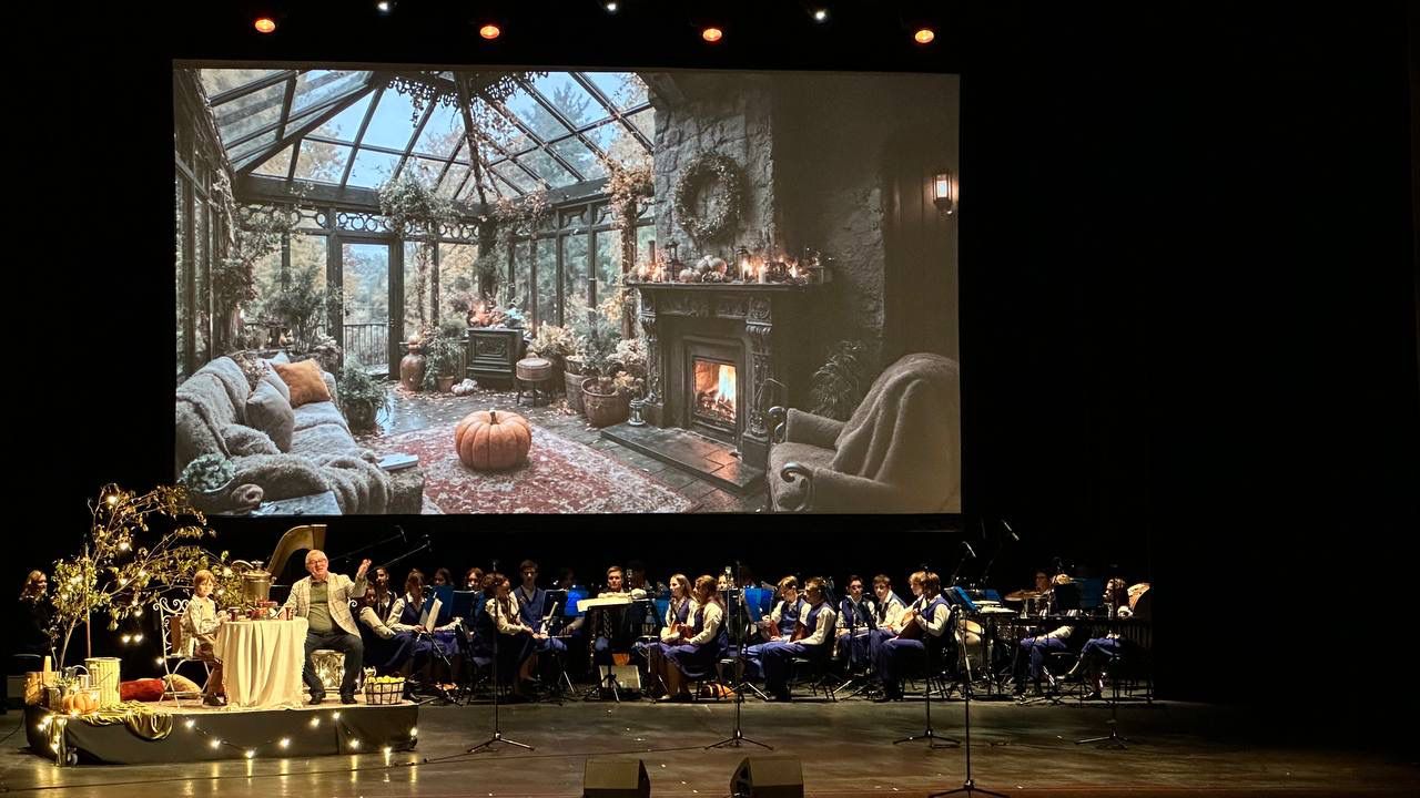 Театрализованную часть провели артист Театра на Трубной Вадим Андреев и артист кино Марк Крамаров, которые на протяжении концерта вели диалог дедушки и внука. Театральные эпизоды дополняли концертные номера в исполнении оркестра Ансамбля песни и пляски имени В.С. Локтева под управлением главного дирижёра Сафронова Александра Сергеевича и камерного хора под управлением Матуловой Татьяны Владимировны и Красавиной Ирины Андреевны.