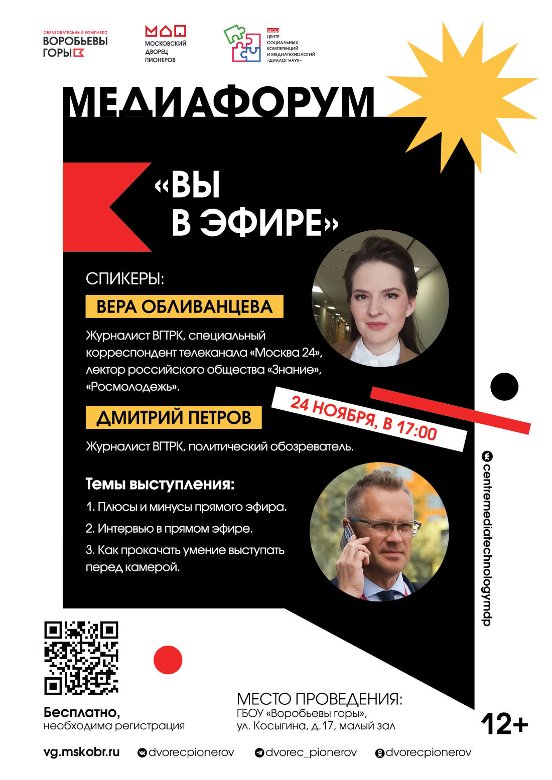 Об этом и многом другом школьникам расскажут журналисты ВГТРК Вера Обливанцева и Дмитрий Петров.
