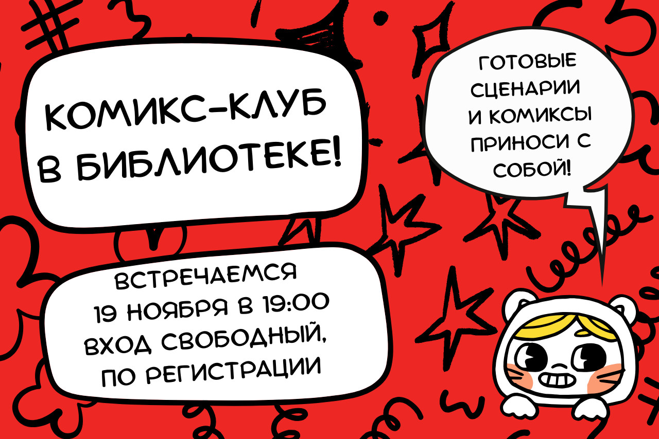 Мы познакомимся друг с другом, с библиотекой и, конечно, поговорим о комиксах. Если вы рисуете комиксы или пишете к ним сценарии — захватите их с собой, мы будем обсуждать ваше творчество.