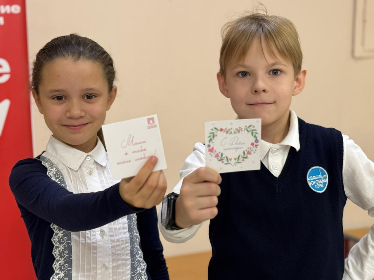 Учащиеся с радостью получали открытки, чтобы выразить для своих мам искренние пожелания. Яркие карточки одна за другой разлетались по рукам школьников, напоминая о приближающемся празднике и важности сказать маме тёплые слова.