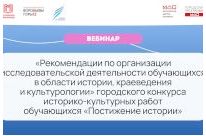 30 октября 2025 года Музей истории детского движения ГБОУ «Воробьевы горы» приглашает участников конкурса историко-культурных работ обучающихся «Постижение истории» городской конкурсной программы «Новые вершины» на вебинар по теме: «Рекомендации по организации исследовательской деятельности обучающихся в области истории, краеведения и культурологии».